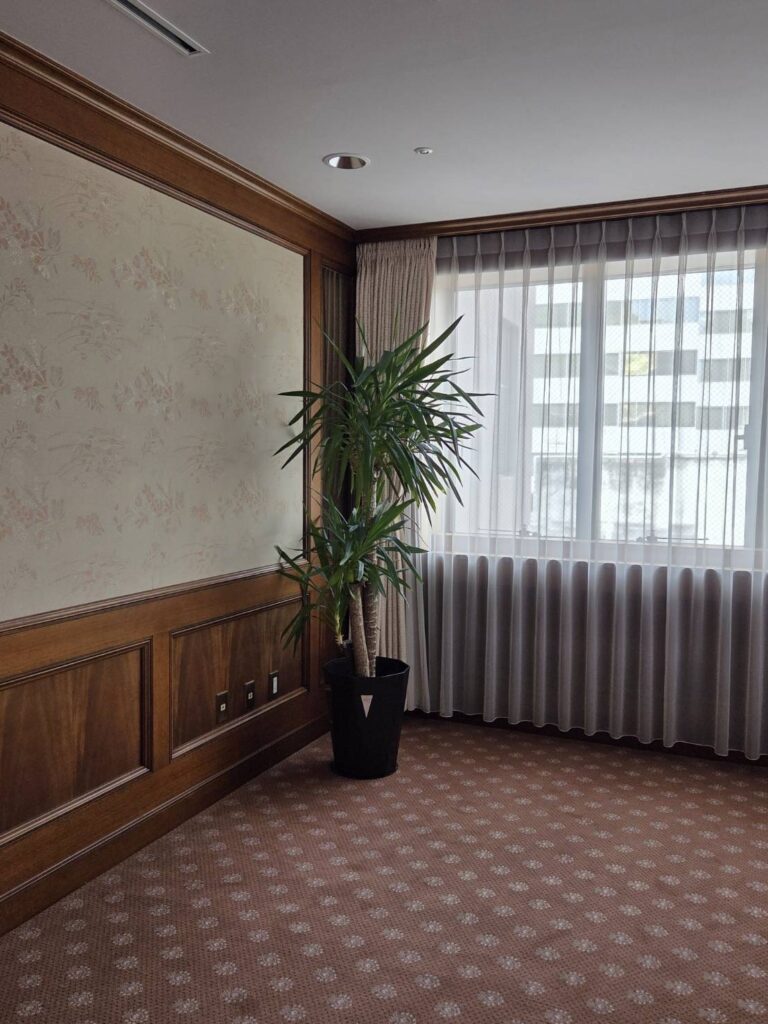 オフィスの落ち着いた空間に、3月半ばの現在はまだ寒さが残るので、寒さに強く、かつスタイリッシュな見た目の観葉植物を配置させて頂いております。